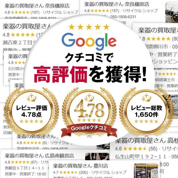 そのため楽器の状態を詳しく⾒れない⽅が査定すると本来の⾦額から⼤きくダウンした査定をされる事も珍しくありません。 必ず楽器に特化した買取業者を選びましょう。